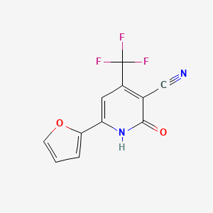 The mechanism of action of 6-(2-Furyl)-2-hydroxy-4-(trifluoromethyl)nicotinonitrile involves its interaction with specific molecular targets. For instance, in medicinal applications, it may act on enzymes involved in glucose metabolism, thereby exerting hypoglycemic effects . The trifluoromethyl group enhances its binding affinity to these targets, leading to increased efficacy.