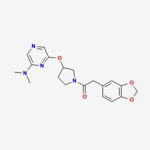 The synthesis of 2-(2H-1,3-benzodioxol-5-yl)-1-(3-{[6-(dimethylamino)pyrazin-2-yl]oxy}pyrrolidin-1-yl)ethan-1-one typically involves multi-step organic reactions. A common approach might include: