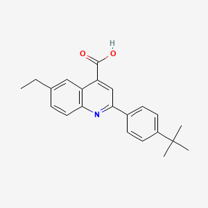 The mechanism by which 2-(4-tert-butylphenyl)-6-ethylquinoline-4-carboxylic acid exerts its effects depends on its specific application. In medicinal chemistry, it may interact with molecular targets such as enzymes or receptors, leading to biological responses. The exact pathways involved would depend on the specific biological system and the nature of the interaction.