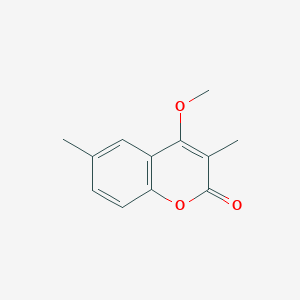 The primary objective of investigating this compound would be to systematically characterize its physicochemical properties and to explore its potential biological activities. The combination of two methyl groups and a methoxy group on the coumarin scaffold suggests several avenues for research: