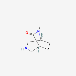 rac-(1R,5S)-6-methyl-3,6-diazabicyclo[3.2.2]nonan-7-one is a bicyclic compound characterized by its unique diazabicyclo structure. It has garnered interest in the field of medicinal chemistry due to its potential biological activities. The compound's structure allows it to interact with various molecular targets, which can influence biochemical pathways and exhibit therapeutic effects.