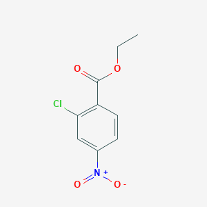 Synthetic Routes and Reaction Conditions: Ethyl 2-chloro-4-nitrobenzoate can be synthesized through a multi-step process involving the nitration of ethyl benzoate followed by chlorination. The nitration step typically involves the reaction of ethyl benzoate with a mixture of concentrated sulfuric acid and nitric acid, resulting in the formation of ethyl 4-nitrobenzoate. This intermediate is then subjected to chlorination using thionyl chloride or phosphorus pentachloride to yield this compound .