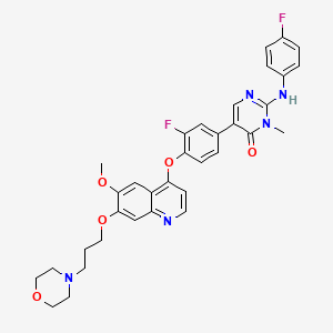 CN1C(=O)C(=CN=C1NC2=CC=C(C=C2)F)C3=CC(=C(C=C3)OC4=C5C=C(C(=CC5=NC=C4)OCCCN6CCOCC6)OC)F | |