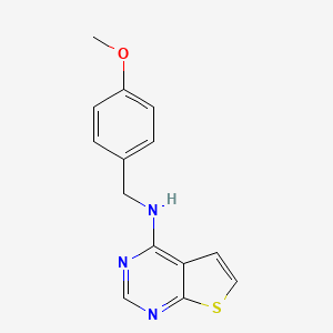 N-[(4-methoxyphenyl)methyl]thieno[2,3-d]pyrimidin-4-amine is a heterocyclic compound characterized by its thieno[2,3-d]pyrimidine structure. This compound has garnered attention in medicinal chemistry due to its potential biological activities, particularly in cancer treatment. The molecular formula is C14H13N3OS, with a molecular weight of 271.34 g/mol.