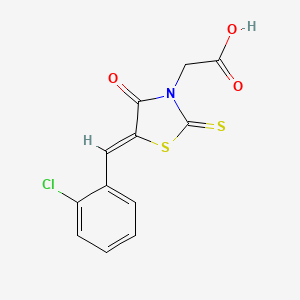 The synthesis of [(5Z)-5-(2-chlorobenzylidene)-4-oxo-2-thioxo-1,3-thiazolidin-3-yl]acetic acid typically involves the condensation of 2-chlorobenzaldehyde with thiosemicarbazide to form a thiosemicarbazone intermediate. This intermediate then undergoes cyclization with chloroacetic acid to yield the final product. The reaction conditions often include the use of a suitable solvent, such as ethanol or methanol, and a catalyst, such as acetic acid or hydrochloric acid, to facilitate the cyclization process.