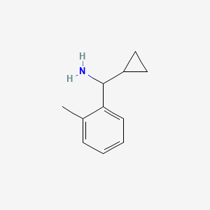 Cyclopropyl(2-methylphenyl)methanamine (C₁₁H₁₅N) is a cyclopropane-containing methanamine derivative characterized by a 2-methylphenyl substituent attached to the cyclopropylmethanamine core. Its structural features include a rigid cyclopropane ring and an aromatic 2-methylphenyl group, which influence its physicochemical and pharmacological properties. Key identifiers include: