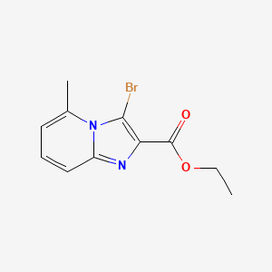 The synthesis of ethyl 3-bromo-5-methylimidazo[1,2-a]pyridine-2-carboxylate typically involves the cyclization of appropriate precursors under specific conditions. One common method includes the reaction of 2-aminopyridine with α-bromoacetophenone in the presence of a base, followed by esterification with ethanol . The reaction conditions often require heating and the use of solvents such as toluene or ethanol to facilitate the cyclization and esterification processes .