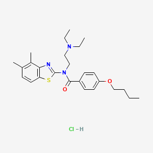 4-butoxy-N-(2-(diethylamino)ethyl)-N-(4,5-dimethylbenzo[d]thiazol-2-yl)benzamide hydrochloride is a synthetic compound that exhibits potential biological activities, particularly in pharmacological applications. Its structure includes a benzo[d]thiazole moiety and a diethylaminoethyl group, which may enhance its interaction with biological targets. This article reviews the biological activity of this compound, focusing on its pharmacological properties, mechanisms of action, and potential therapeutic applications.