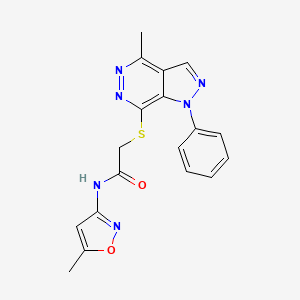 2-((4-methyl-1-phenyl-1H-pyrazolo[3,4-d]pyridazin-7-yl)thio)-N-(5-methylisoxazol-3-yl)acetamide is a complex organic compound that belongs to the class of pyrazolo[3,4-d]pyridazines. These compounds are known for their diverse biological activities and potential therapeutic applications, particularly in the field of medicinal chemistry.