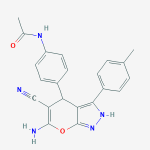 N-[4-[6-amino-5-cyano-3-(4-methylphenyl)-2,4-dihydropyrano[2,3-c]pyrazol-4-yl]phenyl]acetamide |