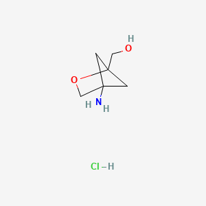 The mechanism by which (4-Amino-2-oxabicyclo[2.1.1]hexan-1-yl)methanol hydrochloride exerts its effects depends on its specific application. For example, in drug discovery, it may interact with molecular targets such as enzymes or receptors, leading to biological effects. The exact pathways involved would depend on the specific biological system and the nature of the interaction.