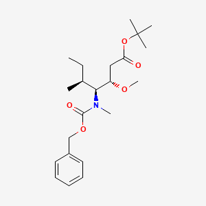 The mechanism by which tert-Butyl (3S,4S,5S)-4-(((benzyloxy)carbonyl)(methyl)amino)-3-methoxy-5-methylheptanoate exerts its effects relies on its ability to participate in selective chemical reactions. The molecular targets and pathways vary but typically involve enzyme binding sites where its stereochemical arrangement fits precisely, thus influencing the rate of enzymatic transformations. The compound's tert-butyl and benzyloxycarbonyl groups contribute to its reactivity and interactions with various biochemical environments.