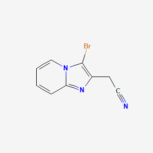 The mechanism of action of 2-(3-Bromoimidazo[1,2-a]pyridin-2-yl)acetonitrile involves its interaction with various molecular targets. The imidazo[1,2-a]pyridine core is known to interact with biological macromolecules, potentially modulating their activity. The exact molecular pathways and targets can vary depending on the specific application and the functional groups present on the molecule .