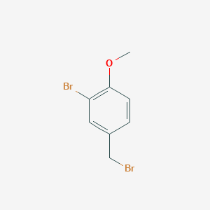 The mechanism of action of 2-Bromo-4-(bromomethyl)-1-methoxybenzene involves its reactivity towards nucleophiles and electrophiles. The bromine atoms act as leaving groups in substitution reactions, facilitating the formation of new carbon-nucleophile bonds. The methoxy group can participate in electron-donating interactions, influencing the reactivity of the benzene ring.