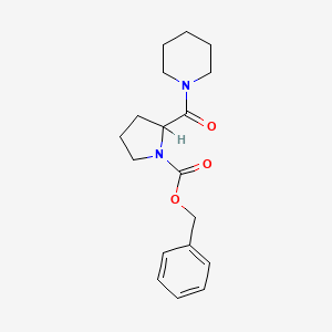 The mechanism of action of Benzyl 2-[(piperidin-1-yl)carbonyl]pyrrolidine-1-carboxylate involves its interaction with specific molecular targets, such as enzymes or receptors. The compound’s structure allows it to bind to these targets, modulating their activity and leading to various biological effects. The exact pathways and molecular targets can vary depending on the specific application and the modifications made to the compound .