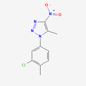 1-(3-Chloro-4-methylphenyl)-5-methyl-4-nitro-1H-1,2,3-triazole is a triazole derivative that has garnered attention in medicinal chemistry due to its diverse biological activities. This compound, with the molecular formula C10H9ClN4O2 and a molecular weight of 252.66 g/mol, is characterized by its unique structural features that contribute to its pharmacological properties.