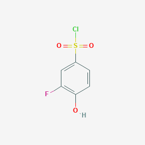 The mechanism of action of 3-Fluoro-4-hydroxybenzenesulfonyl chloride involves its reactivity towards nucleophiles. The sulfonyl chloride group is highly electrophilic, making it susceptible to nucleophilic attack. This reactivity is exploited in various chemical transformations, where the compound acts as a sulfonylating agent. The presence of the fluorine atom enhances the electrophilicity of the sulfonyl chloride group, making it more reactive compared to non-fluorinated analogs.