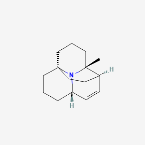InChI=1S/C15H23N/c1-14-8-3-10-15-9-2-4-13(16(14)15)6-5-12(14)7-11-15/h5-6,12-13H,2-4,7-11H2,1H3/t12-,13-,14+,15-/m0/s1 | |