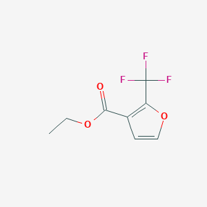 The synthesis of ethyl 2-(trifluoromethyl)furan-3-carboxylate typically involves the reaction of 2-(trifluoromethyl)furan-3-carboxylic acid with ethanol in the presence of a catalyst. The reaction is carried out under reflux conditions to ensure complete esterification . The process can be summarized as follows: