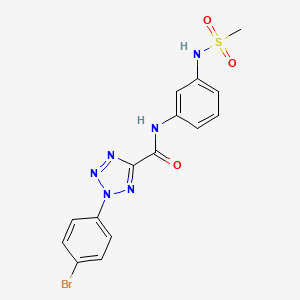 The mechanism of action of 2-(4-bromophenyl)-N-(3-(methylsulfonamido)phenyl)-2H-tetrazole-5-carboxamide involves its interaction with specific molecular targets. The tetrazole ring can mimic the structure of certain biological molecules, allowing it to bind to enzymes or receptors. The bromophenyl and methylsulfonamido groups can further modulate its binding affinity and specificity, leading to various biological effects.