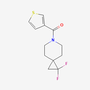 The mechanism by which 1,1-Difluoro-6-(thiophene-3-carbonyl)-6-azaspiro[2.5]octane exerts its effects involves its interaction with molecular targets such as enzymes. The difluoromethyl group can act as an electrophile, forming covalent bonds with nucleophilic sites on enzymes, leading to irreversible inhibition . This mechanism is similar to that of other gem-difluoroalkenes, which are known to inhibit specific enzymes by mimicking the reactivity of carbonyl groups .