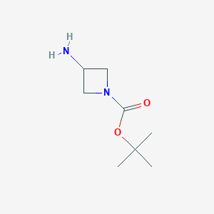 The mechanism of action of 1-Boc-3-(amino)azetidine involves its reactivity due to the ring strain of the azetidine ring. The ring strain makes the compound more reactive, allowing it to participate in various chemical reactions. The Boc protecting group stabilizes the compound and prevents unwanted side reactions during synthesis . The molecular targets and pathways involved depend on the specific application and the nature of the reactions it undergoes.