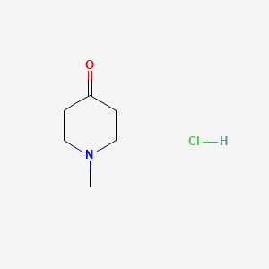 The final step in the synthesis is the formation of the hydrochloride salt. This is achieved by reacting the free base, 1-methylpiperidin-4-one, with hydrochloric acid. The mechanism involves a simple acid-base reaction where the lone pair of electrons on the tertiary nitrogen atom of the piperidine ring is protonated by the hydrogen from the hydrochloric acid. This forms a stable, crystalline ammonium salt.