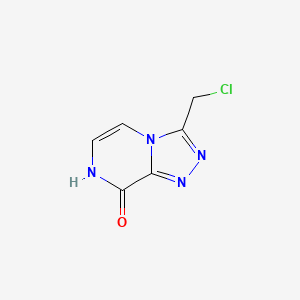 The mechanism of action of 3-(Chloromethyl)-[1,2,4]triazolo[4,3-a]pyrazin-8(7H)-one involves its interaction with specific molecular targets, such as kinases. For instance, as a c-Met kinase inhibitor, it binds to the active site of the enzyme, preventing its phosphorylation and subsequent signaling pathways that promote cancer cell proliferation . The compound’s structure allows it to fit into the kinase’s binding pocket, effectively blocking its activity.