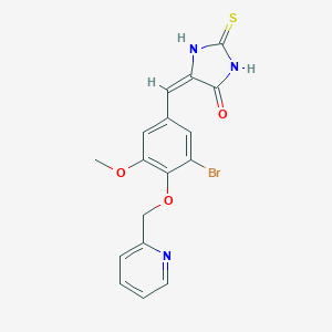 COC1=C(C(=CC(=C1)C=C2C(=O)NC(=S)N2)Br)OCC3=CC=CC=N3 |
