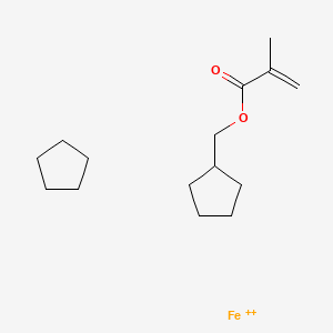 The compound consists of a cyclopentane ring, a cyclopentylmethyl group attached to a 2-methylprop-2-enoate moiety, and an iron(2+) ion. Its unique structure allows for diverse interactions in biological systems.