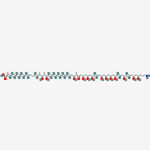 This compound is a very long-chain fatty acid derivative characterized by a polyene backbone, multiple hydroxyl groups, and a terminal amino group. Its complex structure is a product of a type I polyketide synthase pathway.