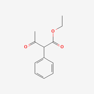 Ethyl 3-oxo-2-phenylbutanoate (CAS No. 5413-05-8) is a β-keto ester of significant interest in organic synthesis.[1] Its molecular structure incorporates both ketone and ester functional groups, making it a versatile precursor for a variety of more complex molecules, including pharmaceutical intermediates.[1] This technical guide provides a comprehensive overview of its chemical and physical properties, experimental protocols for its synthesis and analysis, and its applications in research and development.