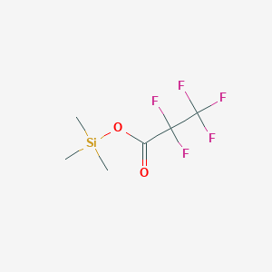 Trimethylsilyl (TMS) derivatives are widely used to enhance the volatility and thermal stability of polar compounds for gas chromatography-mass spectrometry (GC-MS). This compound is particularly effective in derivatizing carboxylic acids, alcohols, or amines, enabling accurate detection of low-abundance analytes in complex matrices like biological fluids or environmental samples. The electron-withdrawing pentafluoropropanoyl group improves chromatographic resolution by reducing peak tailing .