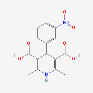 2,6-Dimethyl-4-(3-nitrophenyl)-1,4-dihydropyridine-3,5-dicarboxylic acid is a member of the dihydropyridine class of compounds, which are known for their significant biological activities, particularly as calcium channel antagonists. This compound is structurally related to well-known antihypertensive agents like Nicardipine and Nitrendipine. Its biological activity is primarily attributed to its ability to modulate calcium ion influx in cardiac and vascular smooth muscle cells.