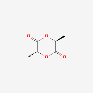 1,4-Dioxane-2,5-dione, 3,6-dimethyl-, (3R,6S)-rel-, commonly referred to as 3,6-Dimethyl-1,4-dioxane-2,5-dione or rac-lactide, is a cyclic diester with significant implications in various biological and chemical applications. This compound is primarily recognized for its role in the synthesis of polylactic acid (PLA), a biodegradable polymer widely used in medical and environmental applications.
