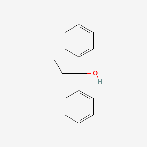 This compound (CAS No. 5180-33-6) is a tertiary alcohol characterized by the presence of two phenyl groups and an ethyl group attached to a central carbinol carbon.[1] This aryl-substituted propanol (B110389) is a significant building block in organic synthesis.[1] Its utility stems from its versatile reactivity and the prevalence of its structural motif in various biologically active molecules.[1] It serves as a crucial precursor for a range of chemical transformations and is particularly valued in the development of chiral ligands and pharmaceuticals.[1] This document provides a comprehensive overview of its chemical properties, structure, synthesis, and reactivity for researchers, scientists, and drug development professionals.