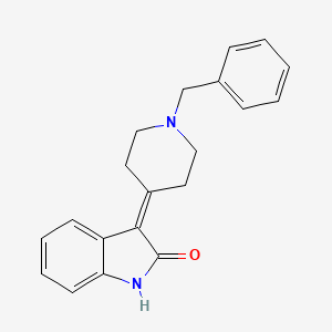 2H-Indol-2-one, 1,3-dihydro-3-[1-(phenylmethyl)-4-piperidinylidene]- is a complex organic compound that belongs to the indole family. Indoles are significant heterocyclic compounds found in many natural products and pharmaceuticals. This particular compound is known for its unique structure, which includes an indole core fused with a piperidine ring, making it a subject of interest in various scientific fields.