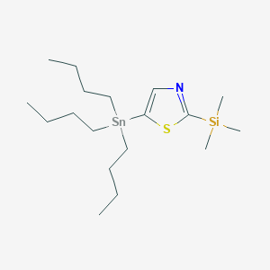 5-(Tributylstannyl)-2-(trimethylsilyl)thiazole is a compound that belongs to the thiazole family, which is characterized by a five-membered ring containing both sulfur and nitrogen atoms. This compound is notable for its unique combination of tributylstannyl and trimethylsilyl groups, which impart distinct chemical properties and reactivity.