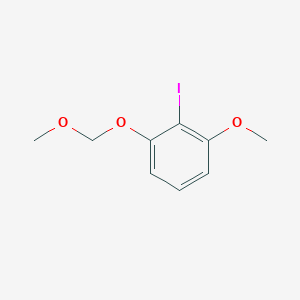 The synthesis of 2-Iodo-1-(methyloxy)-3-{[(methyloxy)methyl]oxy}benzene typically involves the iodination of a suitable precursor. One common method involves the reaction of 2-methoxy-3-(methoxymethyl)phenol with iodine and a suitable oxidizing agent under controlled conditions. The reaction is carried out in an organic solvent such as dichloromethane or acetonitrile, and the temperature is maintained at around 0-5°C to prevent side reactions.