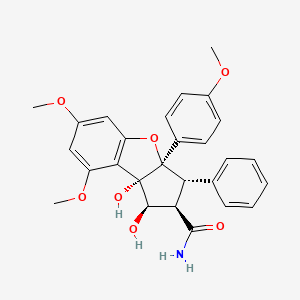 This compound is a member of the rocaglate or flavagline family of natural products, which are characterized by a cyclopenta[b]benzofuran core structure.[1] These compounds have garnered significant interest in the field of oncology due to their potent cytotoxic and anti-proliferative activities against a wide range of cancer cell lines. Unlike some of its more complex analogues, such as silvestrol, this compound possesses a simpler chemical architecture, making it a more attractive target for total synthesis and derivatization in the pursuit of novel therapeutics with improved pharmacological profiles.[1]