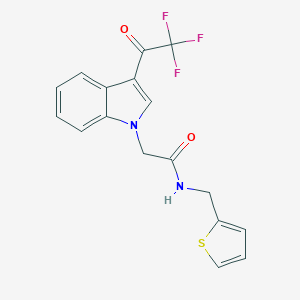 N-[(THIOPHEN-2-YL)METHYL]-2-[3-(2,2,2-TRIFLUOROACETYL)-1H-INDOL-1-YL]ACETAMIDE is unique due to its combination of a trifluoroacetyl group with both indole and thiophene rings. This unique structure allows it to participate in a wide range of chemical reactions and makes it a versatile compound for various scientific applications.