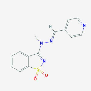 ISONICOTINALDEHYDE 4-(1,1-DIOXO-1H-1,2-BENZISOTHIAZOL-3-YL)-4-METHYLHYDRAZONE is a chemical compound with the molecular formula C14H12N4O2S and a molecular weight of 300.34 g/mol This compound is notable for its unique structure, which includes a benzisothiazole ring system fused with a hydrazone moiety
