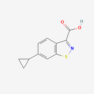 The synthesis of 6-Cyclopropylbenzo[d]isothiazole-3-carboxylic acid typically involves the cyclization of appropriate precursors under specific reaction conditions. One common method includes the reaction of cyclopropylamine with 2-chlorobenzoic acid, followed by cyclization with sulfur and subsequent oxidation. The reaction conditions often involve the use of solvents like dichloromethane and catalysts such as triethylamine.