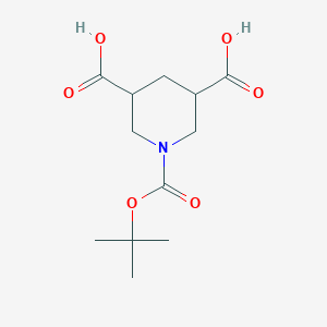 The mechanism of action of 1-(tert-butoxycarbonyl)piperidine-3,5-dicarboxylic acid depends on its specific application. In biochemical assays, it may act as a substrate or inhibitor of enzymes, interacting with active sites and affecting enzyme activity . The Boc group provides steric hindrance, protecting the nitrogen atom and influencing the compound’s reactivity and interactions with other molecules .