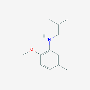The synthesis of 2-methoxy-5-methyl-N-(2-methylpropyl)aniline typically involves the alkylation of 2-methoxy-5-methylaniline with an appropriate alkyl halide, such as 2-methylpropyl bromide. The reaction is usually carried out in the presence of a base, such as potassium carbonate, under reflux conditions to facilitate the nucleophilic substitution reaction .