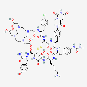C[C@H]([C@H]1C(=O)N[C@@H](CSSC[C@H](C(=O)N[C@H](C(=O)N[C@@H](C(=O)N[C@H](C(=O)N1)CCCCN)CC2=CC=C(C=C2)NC(=O)N)CC3=CC=C(C=C3)NC(=O)[C@@H]4CC(=O)NC(=O)N4)NC(=O)[C@H](CC5=CC=C(C=C5)Cl)NC(=O)CN6CCN(CCN(CCN(CC6)CC(=O)O)CC(=O)O)CC(=O)O)C(=O)N[C@H](CC7=CC=C(C=C7)O)C(=O)N)O | |