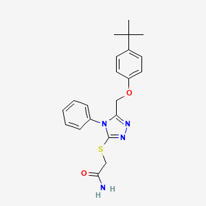 2-[[5-[(4-Tert-butylphenoxy)methyl]-4-phenyl-1,2,4-triazol-3-yl]sulfanyl]acetamide is a complex organic compound characterized by its unique triazole and sulfanyl functional groups
