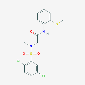 The synthesis of N2-[(2,5-dichlorophenyl)sulfonyl]-N~2~-methyl-N-[2-(methylsulfanyl)phenyl]glycinamide typically involves multiple steps, including the formation of intermediate compounds The process often begins with the preparation of the sulfonyl chloride derivative, followed by its reaction with the appropriate amine to form the sulfonamide