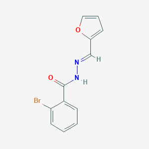 The synthesis of 2-bromo-N'-(2-furylmethylene)benzohydrazide typically involves the condensation reaction between 2-bromo-benzohydrazide and furfural. The characterization of the compound can be performed using various techniques such as NMR spectroscopy, mass spectrometry, and infrared spectroscopy. For instance, the NMR spectrum reveals distinct signals corresponding to the protons in the furan and benzene rings, confirming the successful formation of the hydrazone linkage.