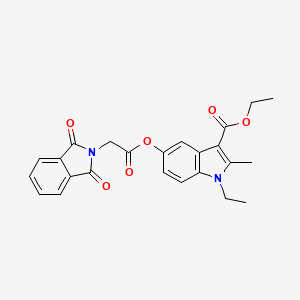 The synthesis of Ethyl 5-[2-(1,3-dioxoisoindol-2-yl)acetyl]oxy-1-ethyl-2-methylindole-3-carboxylate typically involves multiple steps. One common method includes the reaction of 2-iodoaniline with ethyl acetoacetate sodium salt in the presence of copper iodide . This reaction forms the indole core, which is then further functionalized to introduce the 1,3-dioxoisoindol-2-yl and acetyl groups.
